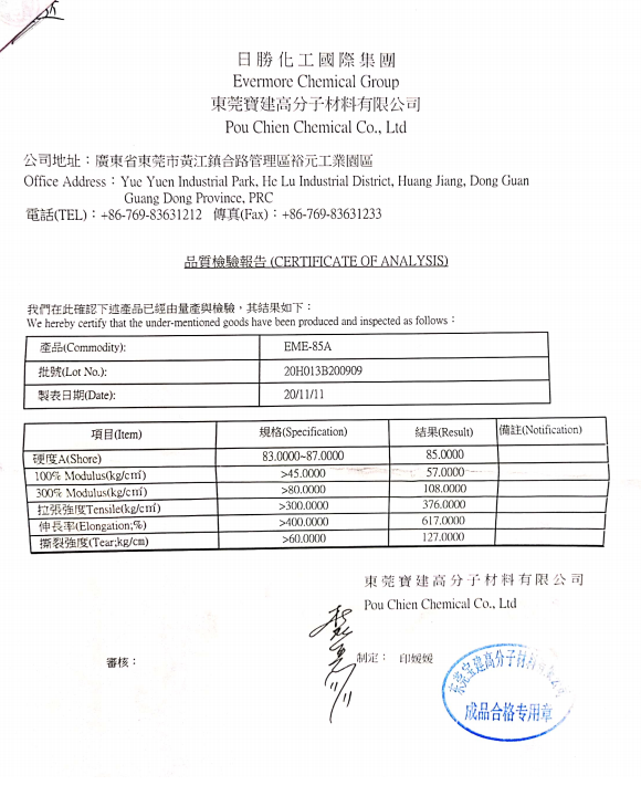 臺灣日勝EME-85A,透明度2.5-3.5MM,耐黃3級,成型快,耐水解,抗出粉。
